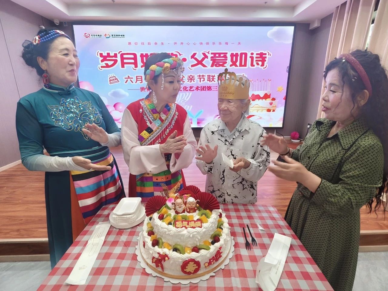 2025年6月14日,老吾老茗芝苑养老院内欢声笑语、温情洋溢,一场以“岁月如歌·父爱如诗”为主题的六月寿星集体生日会与父亲节联欢活动在此隆重举行。世界华人文化艺术团第三分团的志愿者们倾情献艺,为当月寿星送上生日祝福,也为院内父亲们献上节日的深情礼赞。